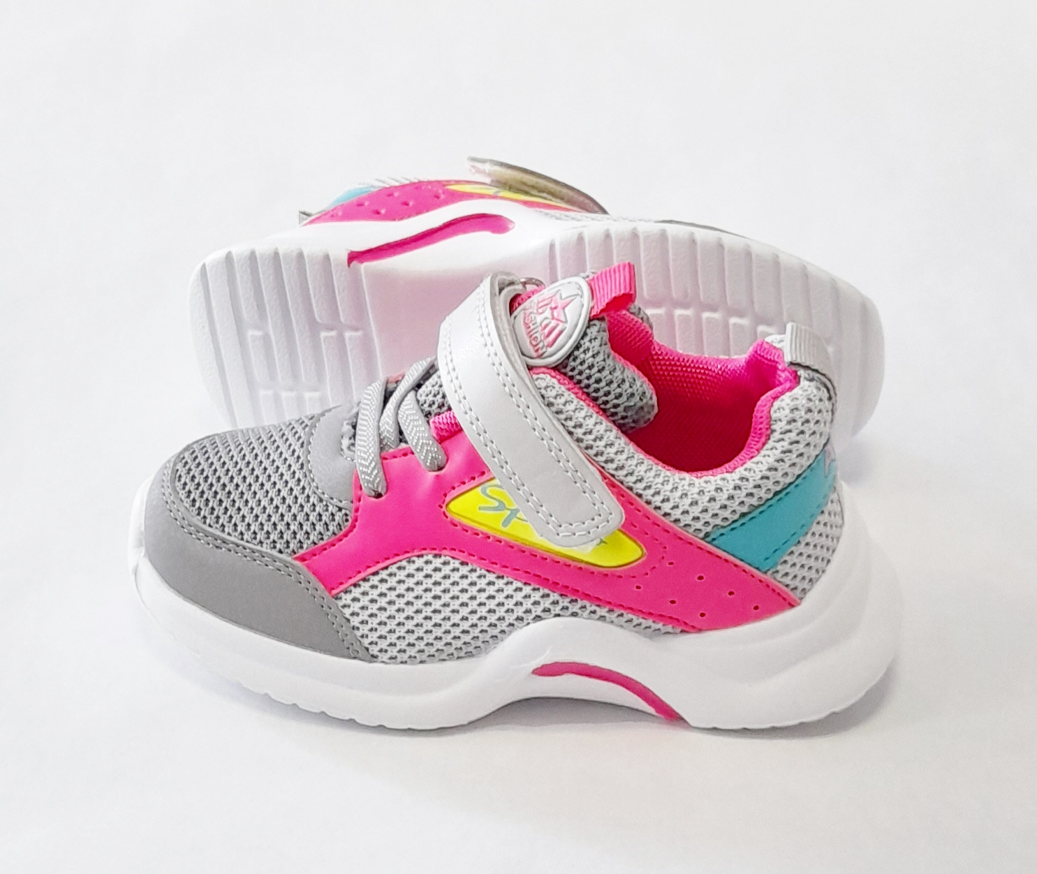 Zvršok zhotovený z odolného textilu v kombinácii s ekologickou kožou. Vnútro podšité textilom. Stielka kožená s miernym vyvýšením klenby. Podrážka veľmi odolná, mäkká a flexibilná. Spôsob zapínania na suchý zips.