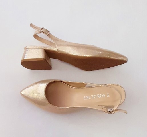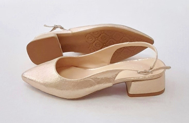 Zvršok zhotovený z odolnej ekologickej kože. Vnútro podšité kožou. Stielka kožená s mäkkým vankúšikom pod pätou. Výška podpätku 3,5cm.